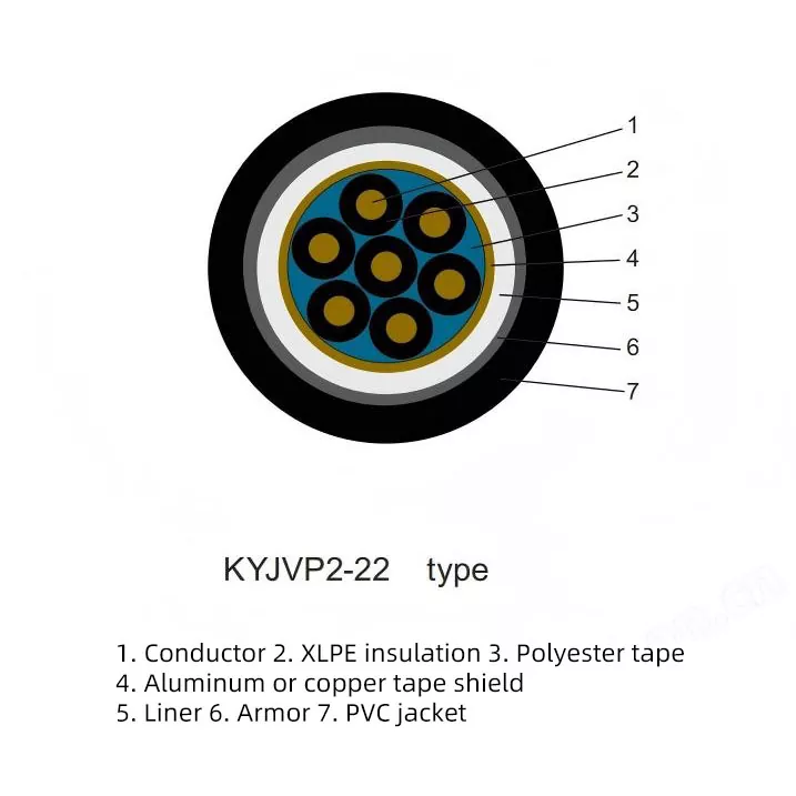 Wenn Sie nach einem Kabel mit ultimativem Schutz für kritische Steuerungssysteme bei starken elektromagnetischen Störungen, hohen mechanischen Risiken und komplexen Umgebungen (wie direkter Erdverlegung und Feuchtigkeit) suchen, erfüllt das langlebige XLPE-isolierte PVC-ummantelte Kupfergeflecht-abgeschirmte STA-Steuerkabel von Yilan Cable, Modell KYJVP-222, als Top-Hersteller in China diese Anforderungen. Es kombiniert die drei Spitzenleistungen der geflochtenen Abschirmung aus doppellagigem Kupferdraht (P2), der Stahlbandpanzerung (22) und der Temperaturbeständigkeit von 90 °C (YJ), um die absolute Reinheit der Signale und die absolute Sicherheit der physischen Verbindungen unter härtesten Bedingungen zu gewährleisten.